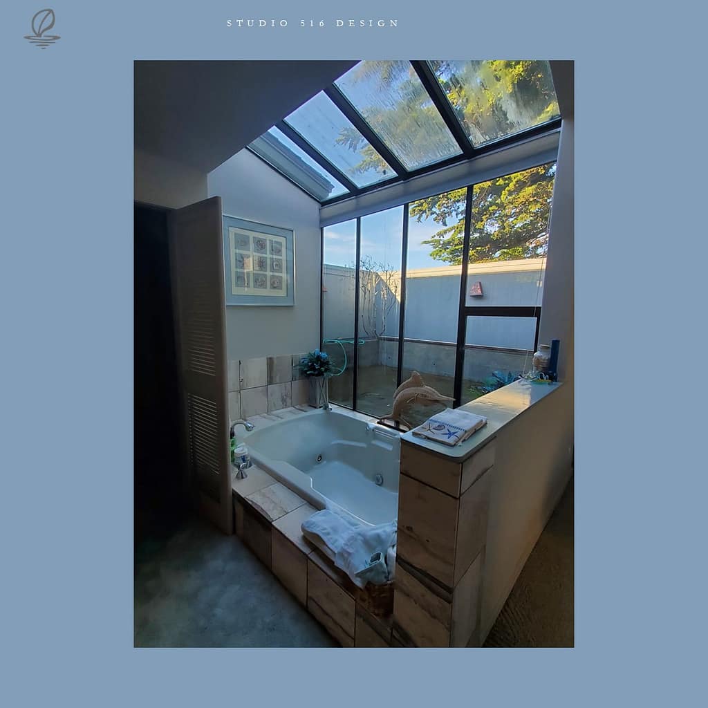 Ah, the giant bathtubs of the past are a great source for creative remodeling. Too big to even fill with hot enough water to enjoy it. This greenhouse bath was just screaming for a remodel. Keep the light and lose the tub!