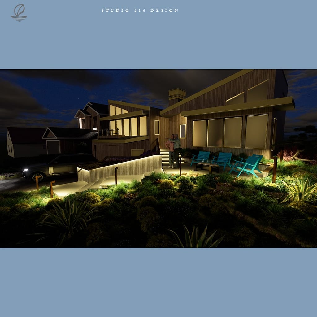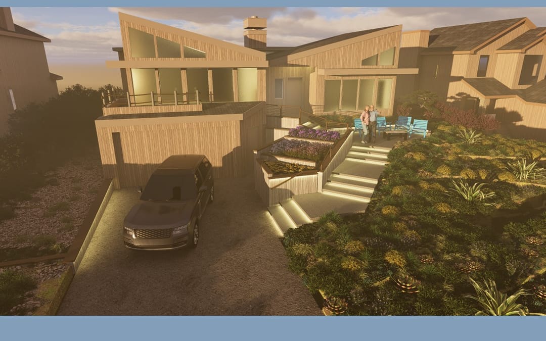 Coastal living integrates with the landscape.. and often that leads to staircases. This is a creative journey from driveway to entry door with a pause option at the ‘beer patio’ level.