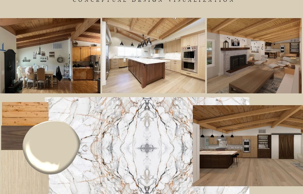 A fun design experience of options within a pretty strict framework. An existing house, keep the ambiance but triple the size of the kitchen.